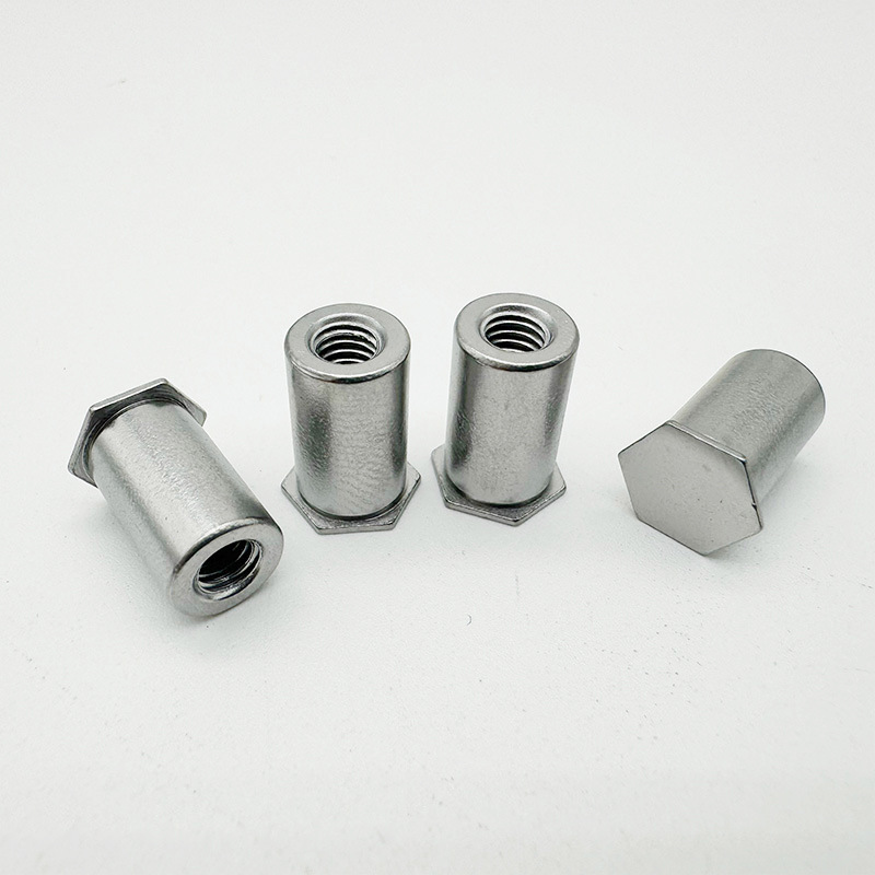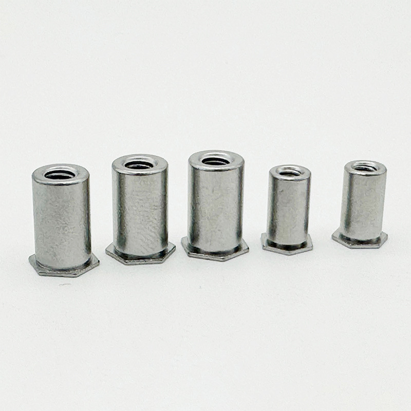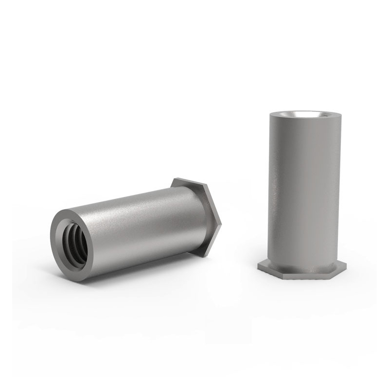 Nutka slepá hlava slepá hlava je upevňovací matice vhodná pro tenké materiály. Je silná a odolná a vlákno není snadné nosit. Má hexový tvar pro snadnou instalaci, plochou hlavu, která sedí spláchnutím, a tělo matice s uzavřenou slepnou dírou. Když jej nainstalujete, matice se mechanicky deformuje (jako nýtující), aby se zablokovala na materiál.