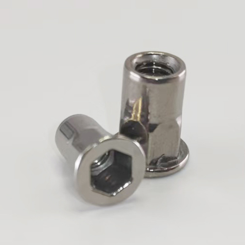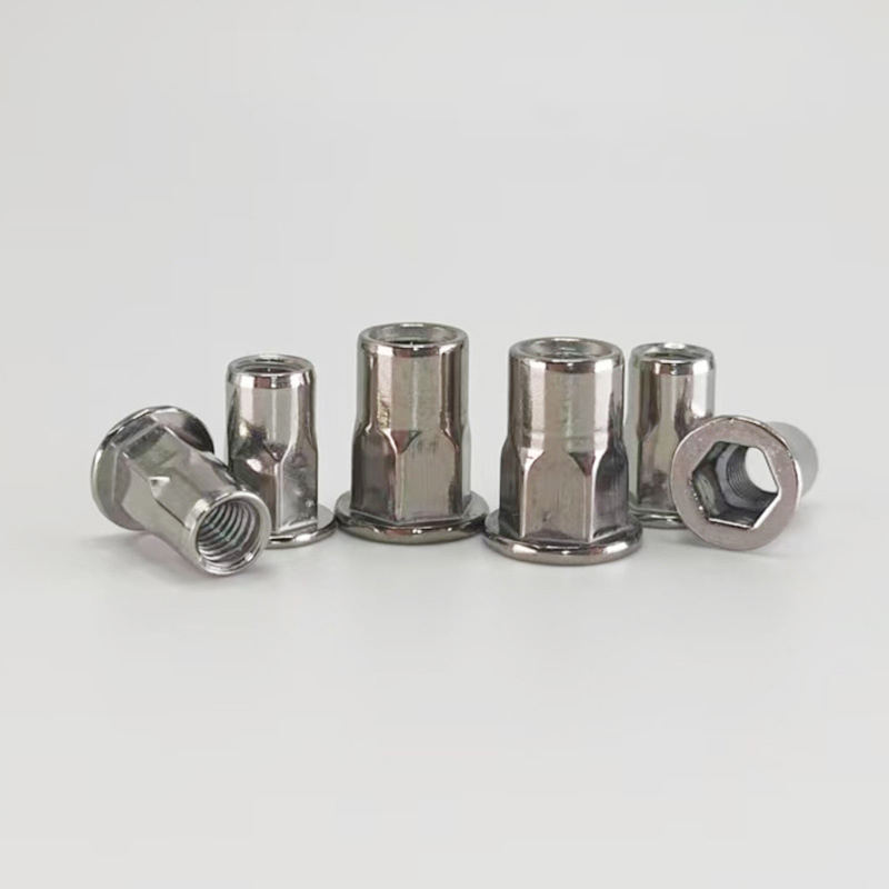 Spolehlivá šestihranná nýtovací matice se hodně používá v průmyslových odvětvích, jako je automobilový průmysl, letecký průmysl, železnice a domácí spotřebiče. Slouží k vytváření silných závitových upevňovacích bodů na plechu a trubkách. Je vyroben speciálně pro stísněné prostory, kde můžete dosáhnout pouze z jedné strany – takže funguje dobře i pro nevidomé aplikace. Tento spojovací prvek je vhodný pro tenké materiály (mezi 0,5 a 6 mm). Při používání nemusíte svařovat ani klepat vnitřní závity a jakmile je nainstalován, snadno se neotáčí.